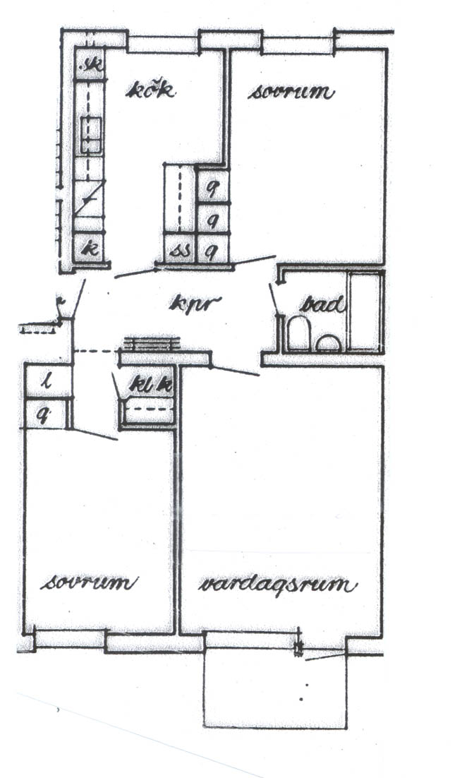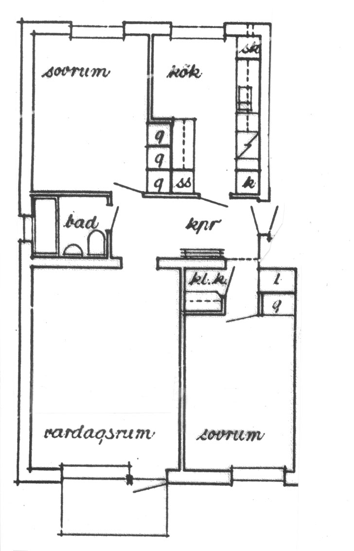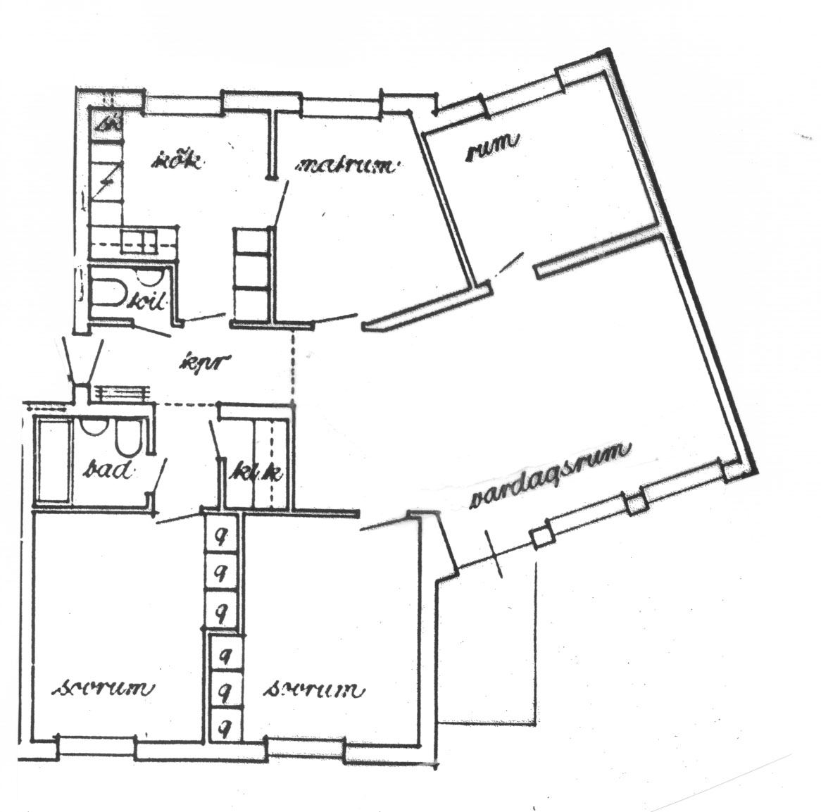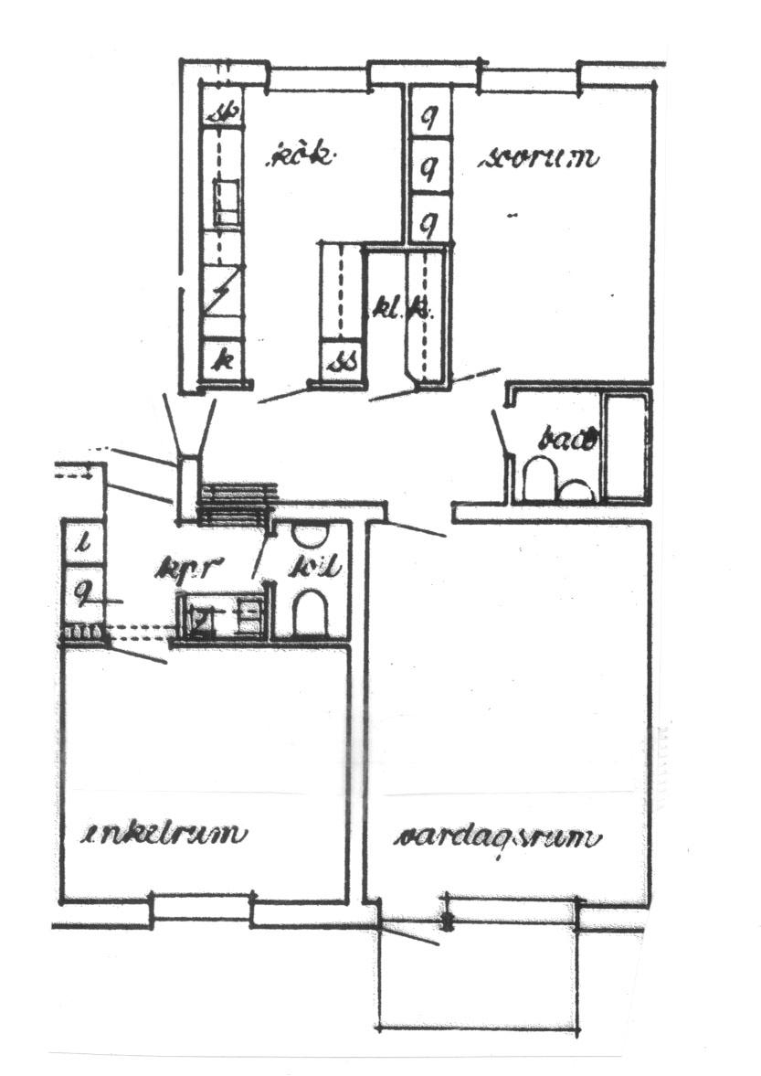 Till varje lägenhet hör ett förråd och en matkällare (båda i källaren)